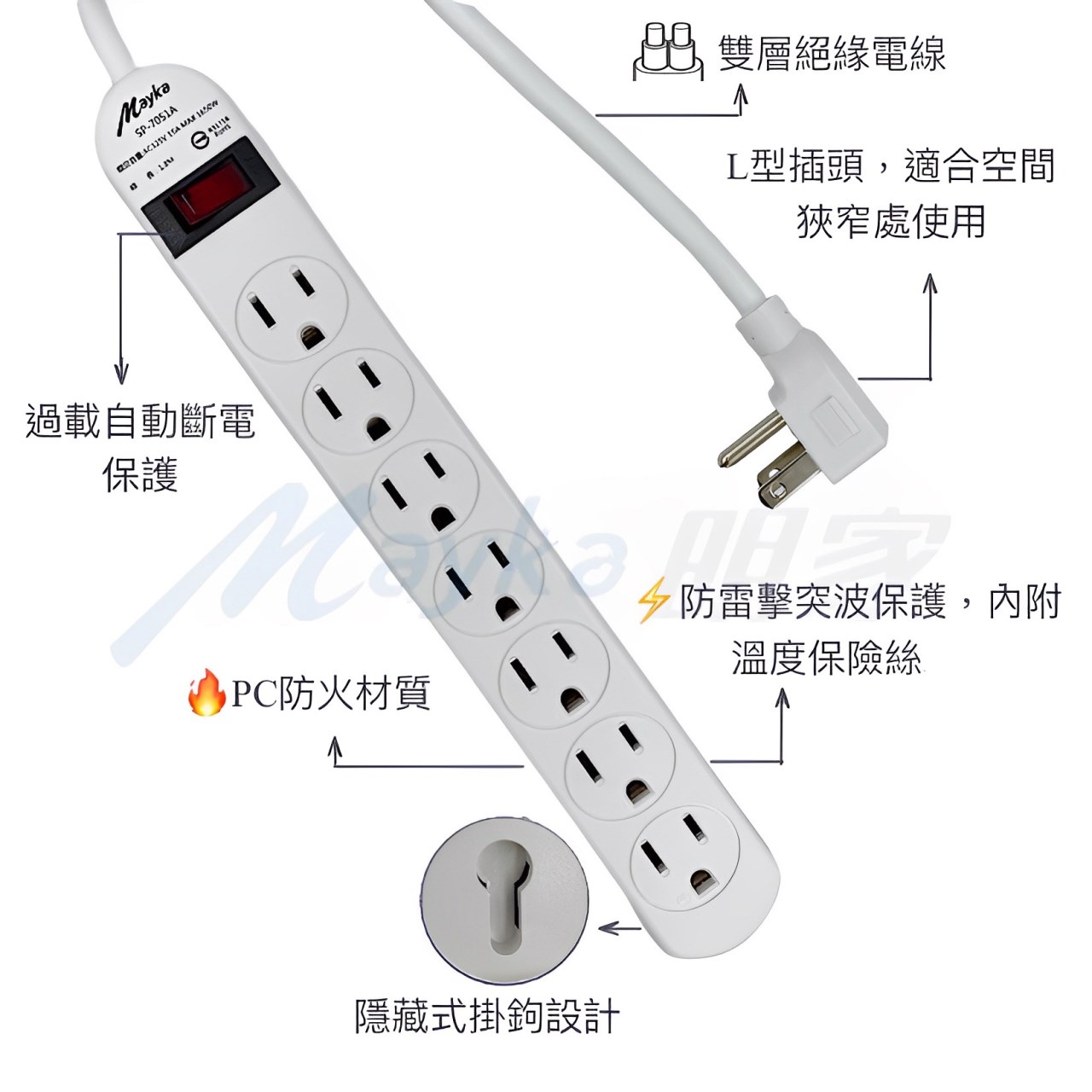 標籤: PC防火阻燃材質, 一體銅條連結, 過載保護, 防雷突波